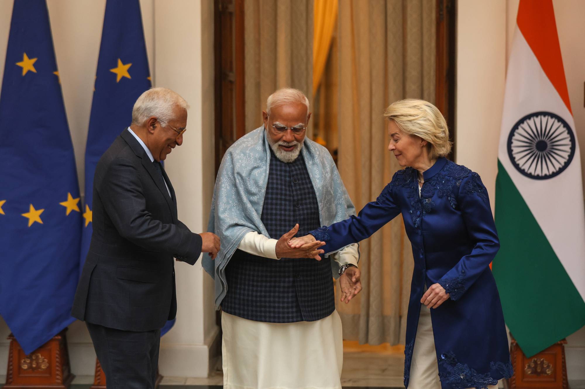 Ursula von der Leyen mengatakan dia memperkirakan ekspor ke India akan berlipat ganda, menekankan bahwa UE akan mencapai ‘tingkat akses pasar tertinggi yang pernah diakui kepada mitra dagang di pasar India yang tradisional proteksionis’.