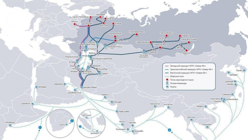 Dalam hal ini, Koridor Utara–Selatan, yang menghubungkan Pelabuhan Mumbai di India melalui Iran menuju Rusia dan Eropa, memiliki arti penting karena jalur ini lebih pendek dan lebih ekonomis dibandingkan Terusan Suez, dengan efisiensi waktu transportasi hingga 40 persen lebih cepat.